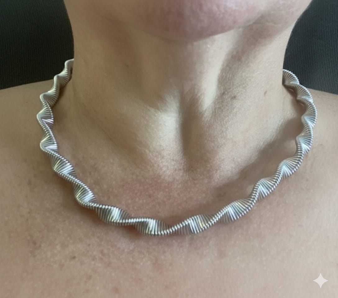 O Colar Flow de Alumínio transforma formas simples em elegância atemporal. Com design espiralado e acabamento dourado ou prateado, o colar é extremamente leve e confortável, ideal para o uso diário ou para complementar produções mais sofisticadas. Seu formato contínuo simboliza harmonia e fluidez, traduzindo a proposta da Aluminium Eco: unir estética contemporânea e consciência ambiental. Uma joia de presença sutil, pensada para quem valoriza design, significado e propósito. Veja também a Pulseira Flow.