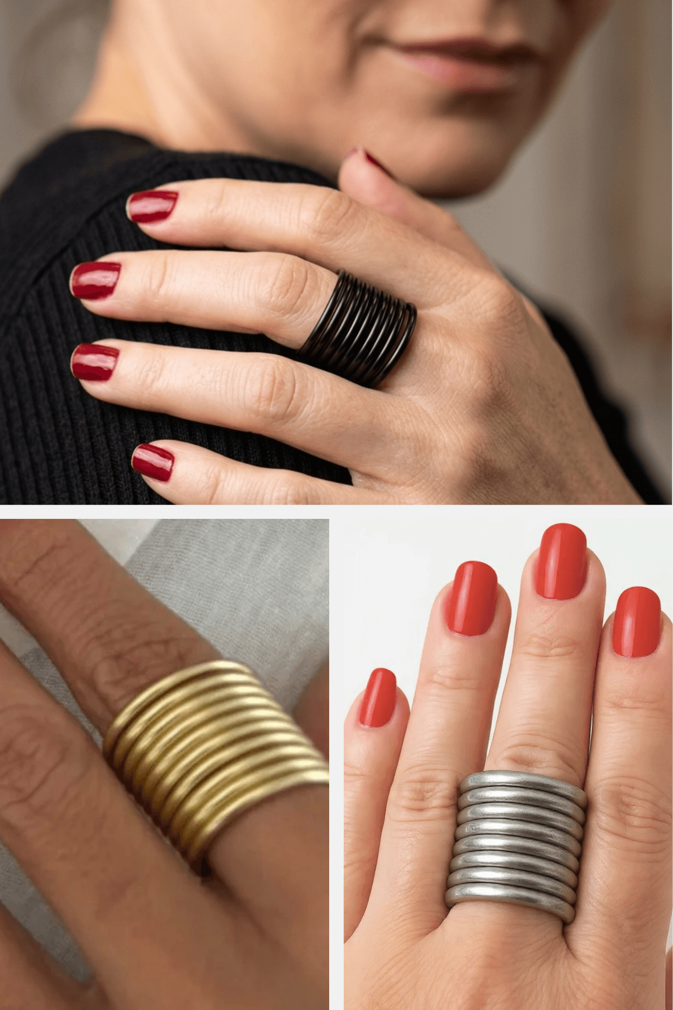 Três cores, infinitas combinações. O Anel 8 Voltas é uma das peças mais marcantes da Aluminium Eco — leve, elegante e com um design que chama atenção na medida certa. Neste combo exclusivo, você leva três versões: preto, prateado e dourado, para combinar com qualquer look e ocasião.