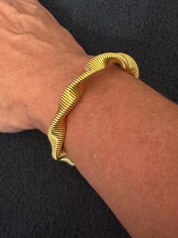 Cada pulseira é feita à mão, o que traduz exclusividade e autenticidade em cada curva. O alumínio proporciona leveza, garantindo conforto ao longo do dia.